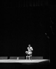 In scena c’erano solo un attore, una sedia, e nient’altro. Fabrizio Gifuni, instancabile, per quasi un’ora e mezza ha alternato la presenza in scena di vari personaggi, supportato soltanto da cambi di luci e brevi istanti di buio. Il ritmo risultava sostenuto dall’inizio alla fine, grazie al forte apporto dato dall’espressione del corpo: i gesti, quelli semplici e marcati delle braccia e delle gambe, le espressioni del viso, accentuavano la portata delle parole del testo, permettevano di comprendere meglio il suo significato.